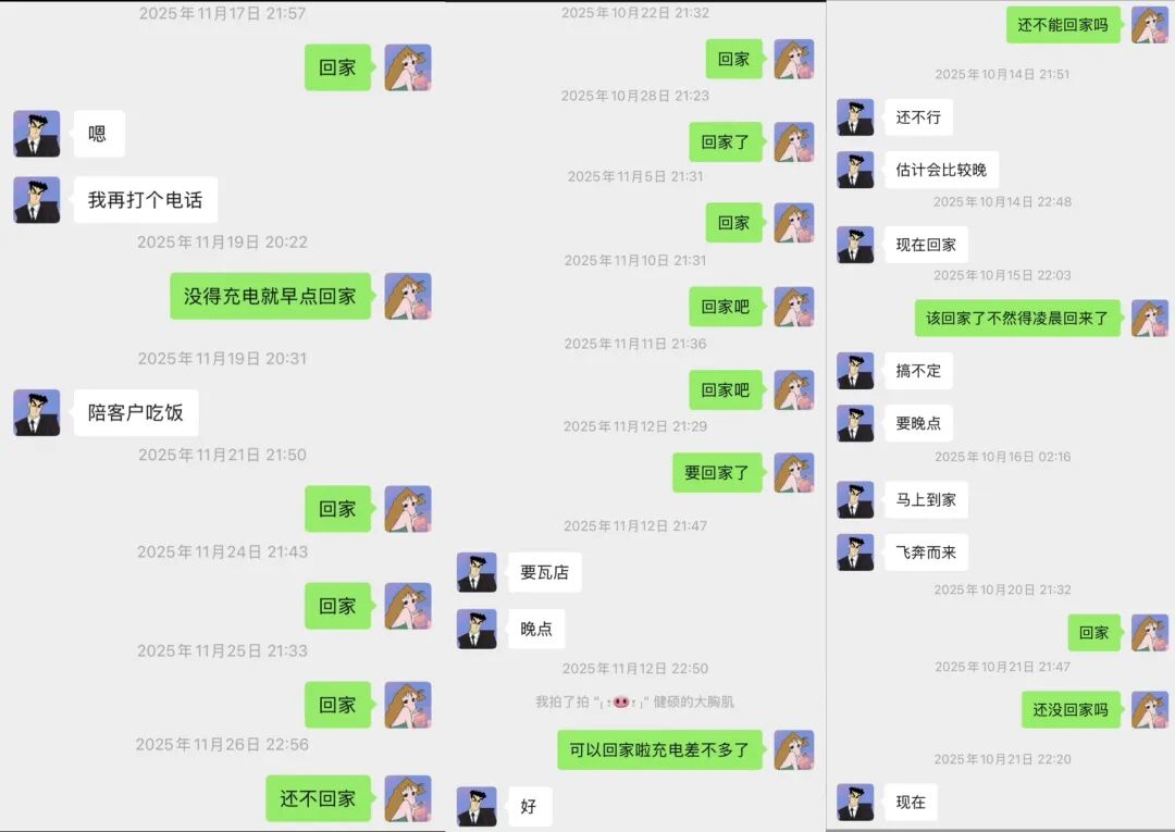 几乎每天,杨女士都在催丈夫回家。但随着工作量的增加,两人的沟通时间也变得越来越少,从最初的几分钟回复到后来的几小时才能收到回复。