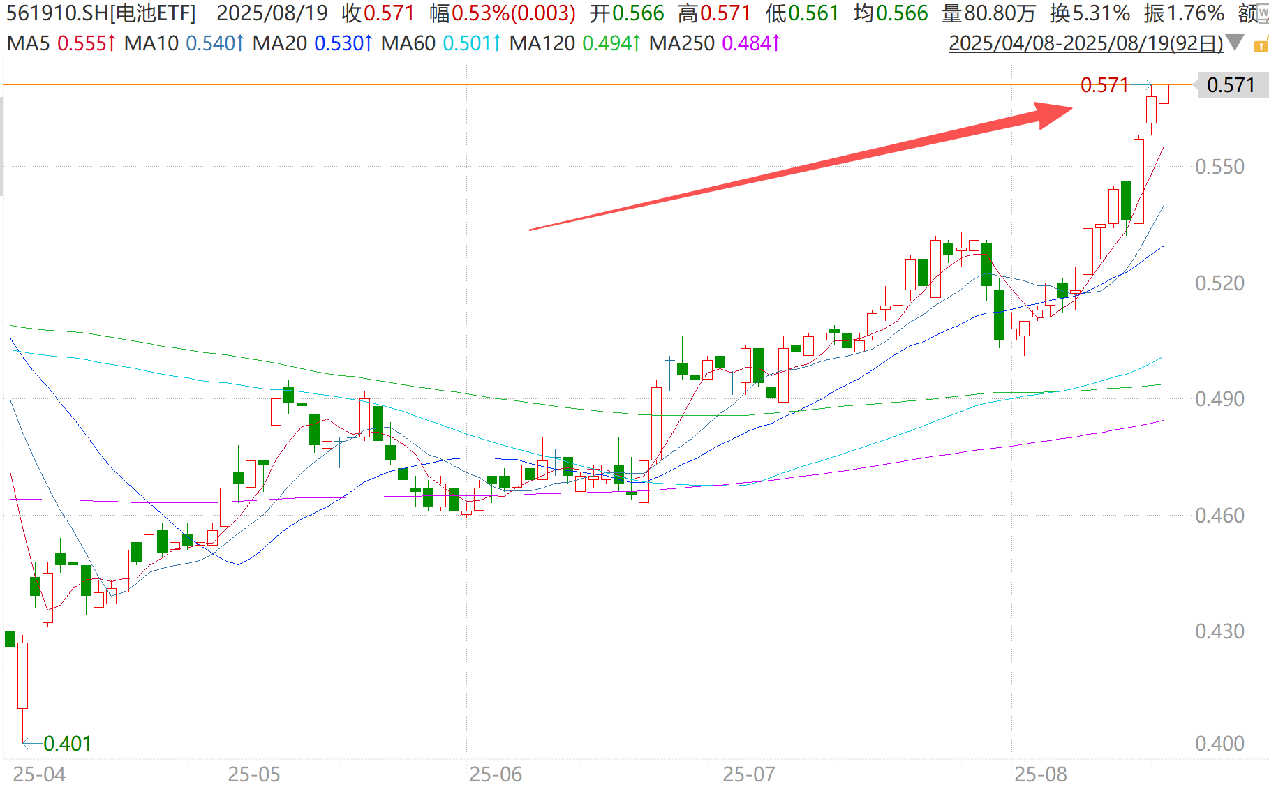 电池ETF(561910)跟踪该指数,年内涨超16%,昨日获得1183万的大额净流入,显示或有资金正在埋伏。今日午盘ETF再度冲击年内新高,收涨0.53%。