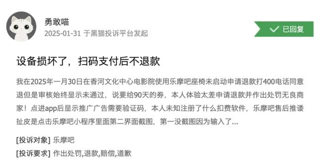 黑猫投诉上,关于乐摩吧的投诉主要集中在退款问题,设备损坏问题,以及客户服务不及时等问题。其中有很大的比例与合伙人的工作不到位有关,虽然合伙人要承担场地使用费及运营维护成本,但相比较直营,乐摩吧对于合伙人的控制能力不足。