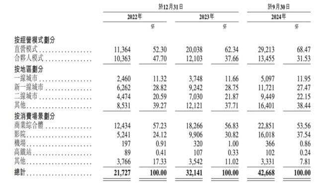 2022年时,直营模式贡献了52.3%的营收,合伙人为其贡献了47.7%的营收,2023年直营模式贡献比重已经攀升到62.34%,到2024年这一比例攀升到了68.47%。