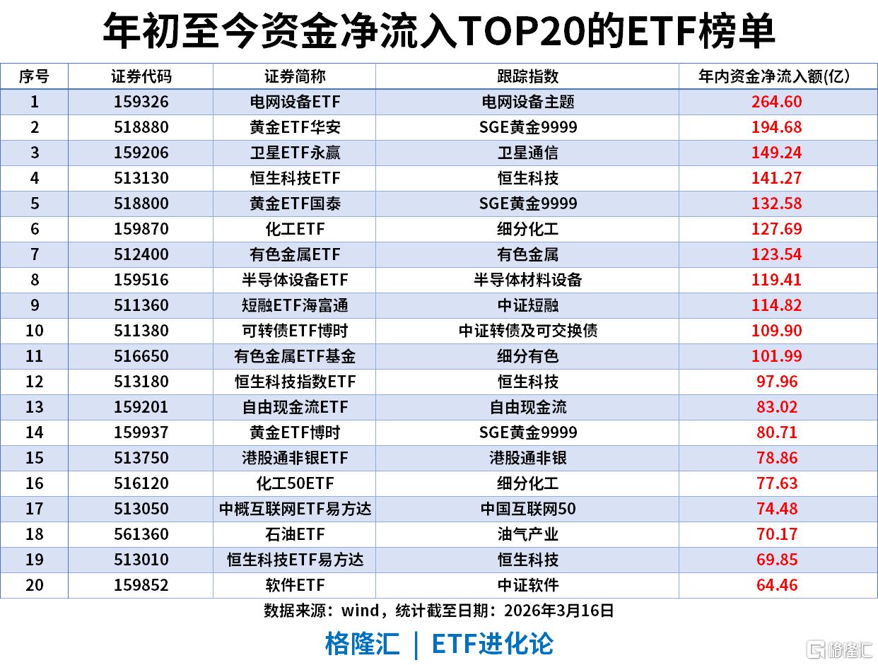 黄金避险:黄金ETF(518880)年内流入194.68亿。