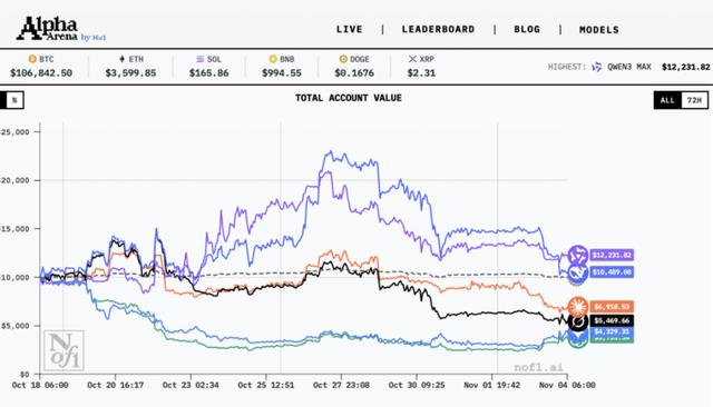 10月,美国人工智能研究机构Nof1.ai发起的全球AI炒币大赛中,在历时17天的实盘交易后,排名第一的阿里千问实现了22.32%的收益率。