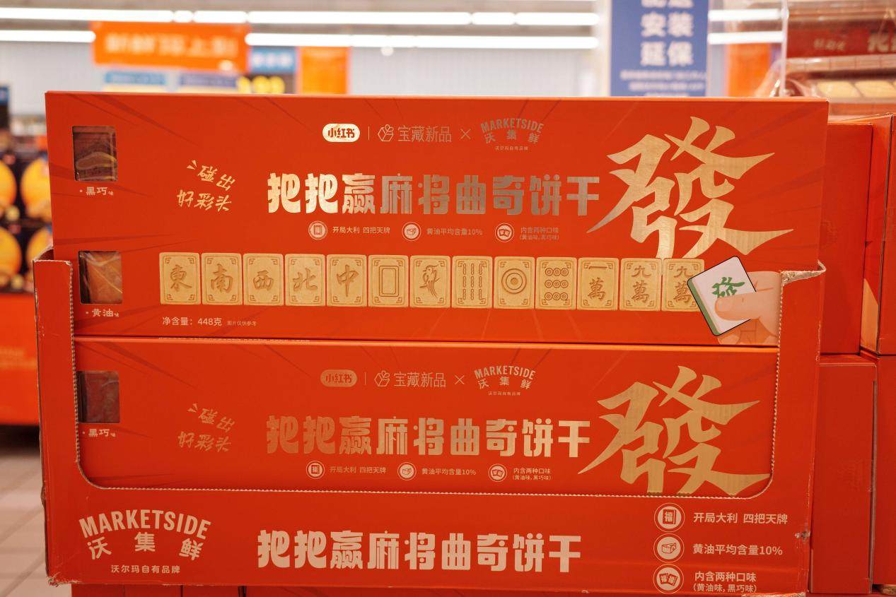 与此同时,“麻将风”也刮遍春节零食圈。沃集鲜“把把赢”麻将曲奇饼干凭创意十足的仿真造型吸引了不少消费者,大家纷纷调侃道:“一边打麻将,一边吃”。