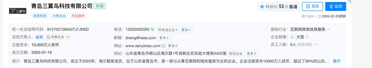 天眼查APP显示,海尔旗下的高端智能生态品牌,三翼鸟2020年成立。实际上,这个品牌自成立开始就瞄准场景智能。