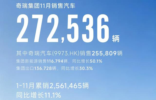 曾经被诟病新能源“起了大早,赶了晚集”的奇瑞,在2025年展示了惊人的追赶速度。1-11月,奇瑞汽车累计销售新能源汽车814685辆,同比增长69.4%,首次年内新能源汽车累销突破80万辆。“燃油车稳固现金流,新能源迅猛冲增量”的双线格局已然清晰。