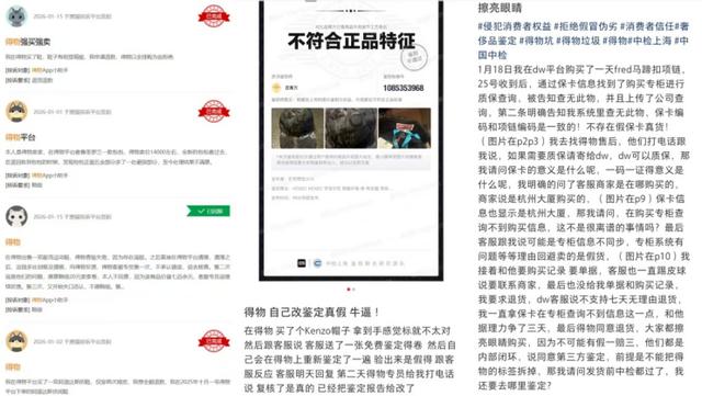 但随着平台规模迅速扩张,这套基于“先鉴别,后发货”模式构建起的信任体系正面临新的考验。近年来,市场上有关得物商品质量、鉴定结果、售后服务的用户投诉逐渐浮现,揭示了其规模增长背后潜在的品控与信任隐忧。