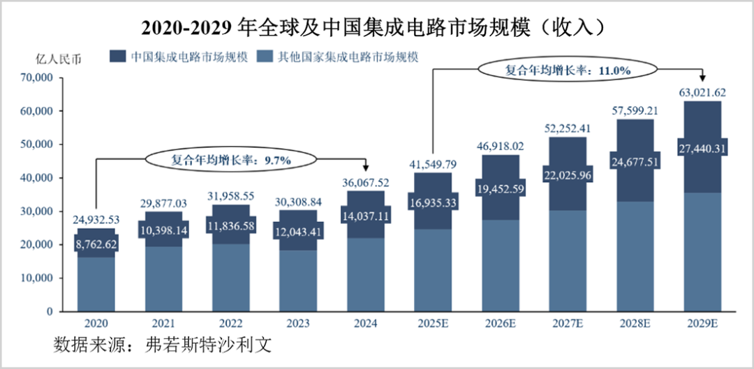 据弗若斯特沙利文预测,中国AI芯片市场规模将从2024年的1425.37亿元,暴涨到2029年的13367.92亿元,年均复合增长率将高达53.7%。