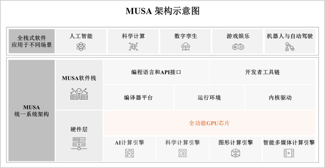 其核心竞争力,也不完全在于“全能型GPU”的技术路径。更重要的是,其自主研发的MUSA生态,赋予了国产GPU集AI计算、图形渲染、物理仿真、科学计算、超高清视频编解码等多种能力于一体的能力。