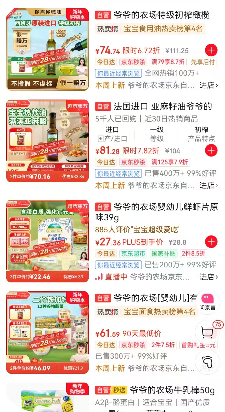 对于大多数宝妈来说,甄别婴幼儿食品的重要指标是价格,同样的商品,价格高的肯定更安全、更健康,价格太低会让人不放心,而爷爷的农场也掐住了宝妈们的心理。