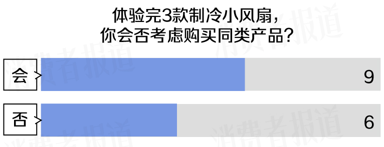 值得一提的是,体验完这3款产品后,有9位志愿者对制冷小风扇感兴趣,表示会考虑选购同类产品。
