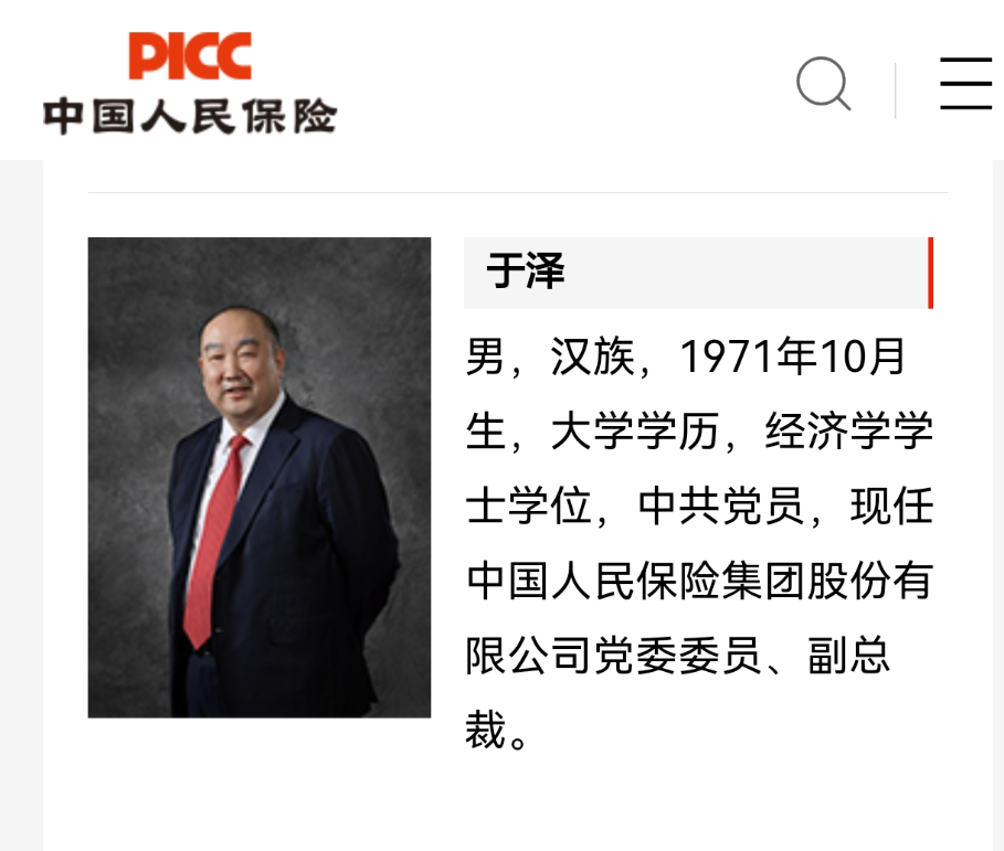 截至发稿,中国人保官网仍可查询于泽的任职信息。