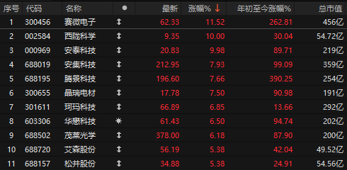 今天早上有报道称,华为和中芯国际在先进制程的良率上有突破,今天午盘光刻机板块走强,西陇科学、安泰科技涨停,汇成真空、茂莱光学等多股大涨。
