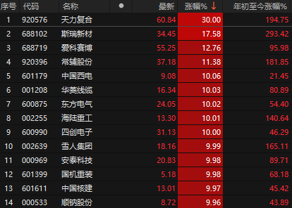 今天可控核聚变板块掀起涨停潮,雪人集团、东方电气、四创电子、天力复合等多股涨停。