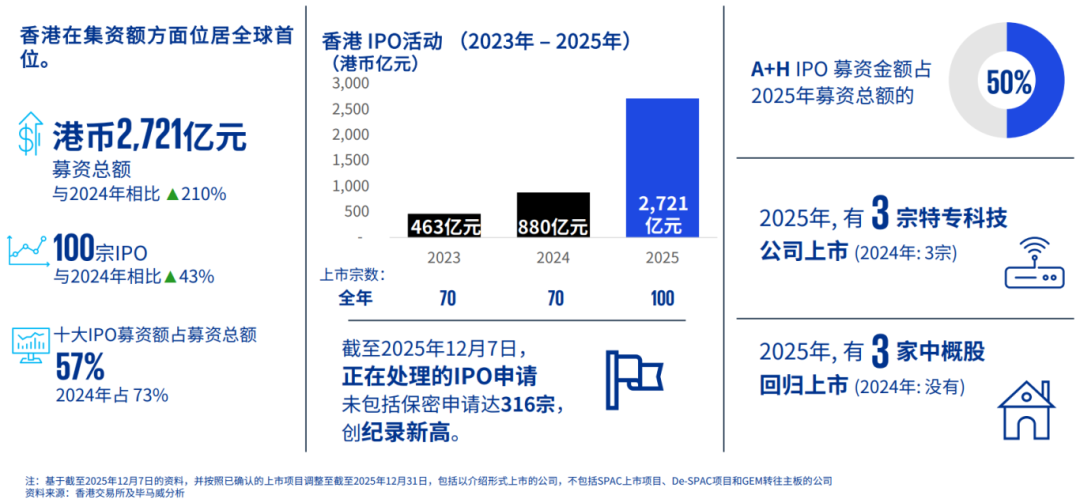 毕马威12月10日发布的报告预计,2025年港股IPO募资额将达到2721亿港元,同比增长210%,有望自2019年以来重夺全球IPO市场榜首。