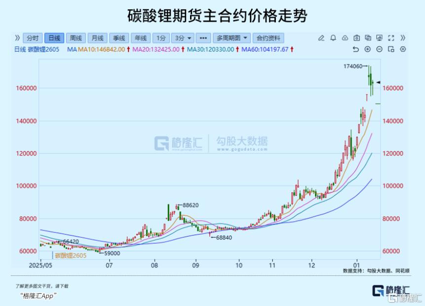 锂盐也迎来显著大涨逼空行情,近日碳酸锂期货价格一度飙升回到17.4万元/吨,是2025年二季度时的价格的近3倍。