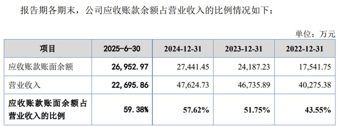 瑞尔竞达的应收账款问题也是其北交所上市的一大隐患。2022-2025年上半年,瑞尔竞达应收账款账面价值分别为1.56亿元、2.11亿元、2.39亿元、2.41亿元,占流动资产的比例分别为26.52%、32.14%、35.22%、32.89%。随着公司经营规模的不断扩大,应收账款规模可能还会进一步增加,应收账款管理难度也将随之增加。
