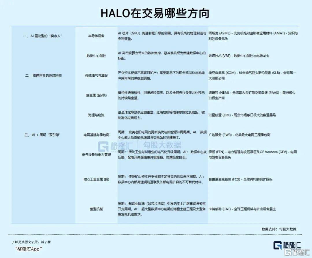 而高盛的定义则更加广泛,进一步将电网、运输基础设施、重型机械(如福特、通用汽车)、甚至餐饮食品饮料都纳入了HALO交易的范畴。
