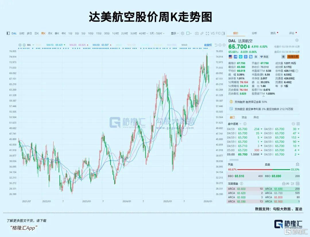 反观达美航空,手里握着实打实的机队,拥有真实的运输能力,股价今年一路强势。