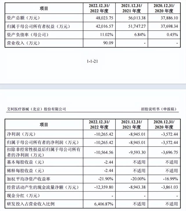艾柯医疗自从成立以来未能摆脱亏损泥潭,2020-2022年三年间,公司累计净亏损高达2.28亿元,亏损规模呈加速攀升态势。