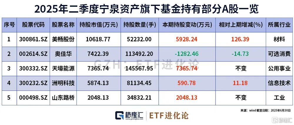 公开信息显示,截至2025年中,宁泉旗下产品出现在美畅股份、奥佳华、天壕能源、洲明科技、山东路桥等公司前十大持有人明细。