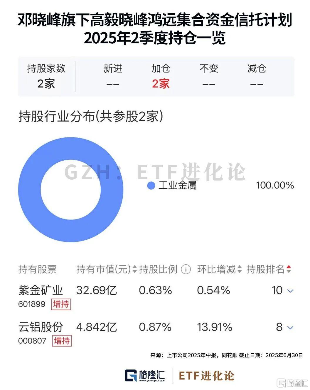 晓峰鸿远集合资金信托二季度加仓紫金矿业、云铝股份。