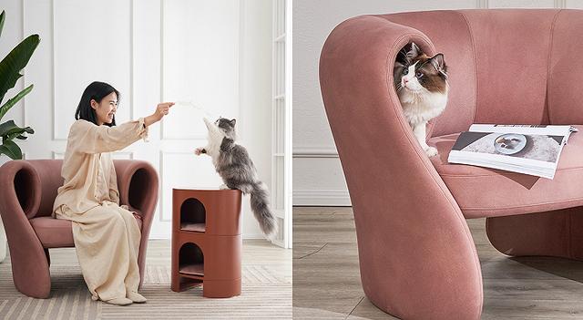 据「IPO早知道」观察,在产品设计上,章回尽可能使得自己的产品具有灵活多变的形态,能够在不同的场景下具备一物多用的功能——譬如编木系列茶几(上图),就同时具有收纳和茶几的功能;宠猫系列沙发(下图)则是对沙发和猫窝功能的组合。