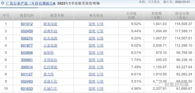 笔者翻看该基金持仓明细发现,该基金自成功发行后,一直重仓持有隆基股份(备注:隆基股份已于2022年5月16日更名为隆基绿能),2021年四季度隆基绿能股价正处于高点位置,而2021年四季度该基金却一下子买进1898.09万股,而且持股比例10.53%,超过10%持股上限。