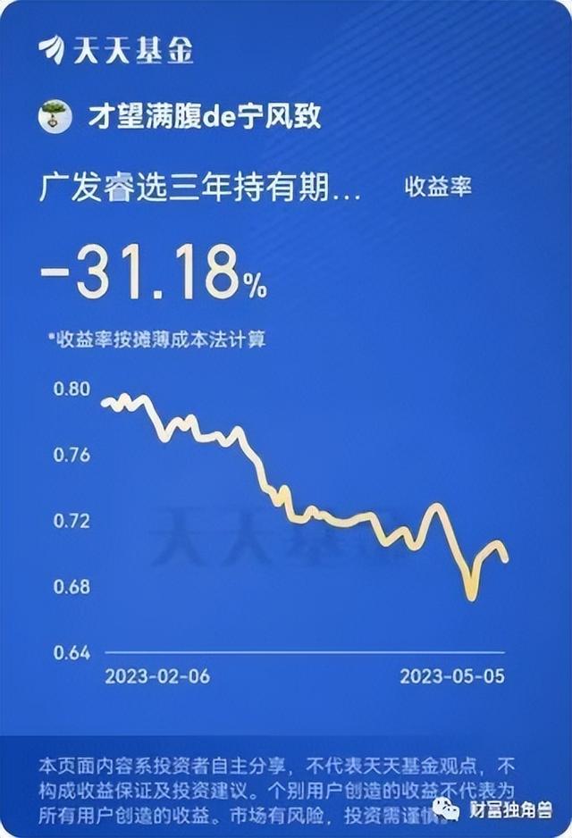有基民表示,广发睿选三年持有期混合[010594]这种水平三岁小孩都能当经理。这么小的规模,随时都可以调仓,为什么拿着不动?也有基民表示,广发是优秀基金经理忽悠基民,挖坑让基民往里跳,跳够了换经理,让他们用基民学手,太可恶,无耻之极!