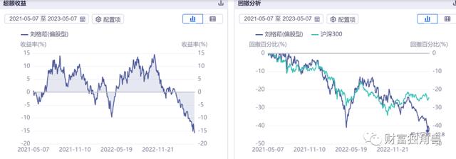 据同花顺显示,刘格菘最近两年来,偏股型基金的收益率持续下滑,2022年11月4日还有13.49%的收益率,截至2023年5月4日刘格菘的基金收益率已经接近于-15%。而在回撤分析方面,刘格菘最近两年来也是持续下滑,截至5月4日,刘格菘已经回撤至41.24%。