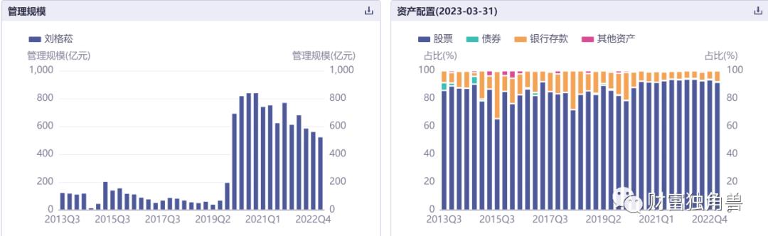 2020年四季度末刘格菘基金管理规模冲至843.43亿元后,近两年来刘格菘旗下基金规模出现下降,截至2023年一季度末,刘格菘管理的基金规模已跌至526.49亿元,相较于2020年四季度的843.43亿元下降了316.94亿元。其中广发行业严选三年持有期混合A跌幅最大,刘格菘在其任职回报为-40.24%。