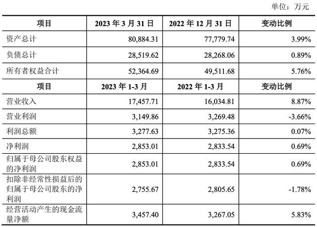 另据招股书披露,恒勃股份2023年1-3月(第一季度)的收入约为1.75亿元,较2022年同期的1.60亿元增长8.87%;净利润2853.01万元,同比增长0.69%;扣非后净利润2755.67万元,同比变动-1.78%。