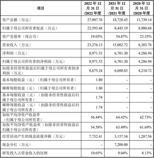 2020年、2021年和2022年,拓邦新能的营业收入分别为8303.76万元、1.51亿元和2.33亿元,年复合增长率为67.42%;净利润分别为4286.94万元、6701.30万元和8971.53万元,扣非后净利润分别为4210.72万元、6600.83万元和8675.24万元。