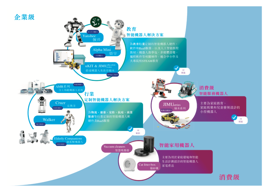 于往绩记录期间,优必选科技已推出超50类产品、售出超500,000台机器人产品,且已涵盖政府、教育机构和多家工商企业等超900家企业级集团客户。