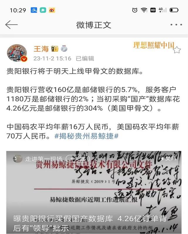 直到最近,微博知名打假大V表示,贵阳银行上线的新核心业务系统,由原定的易鲸捷改为甲骨文。但是否属实,贵阳银行至今未公开回应。