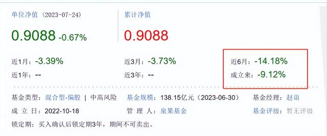 但是目前,赵诣管理的基金却没给投资者带来较好的回报。拉长时间,从基金成立以来的9个多月时间,泉果旭源三年持有累计亏损超过9%。这意味着在基金成立时就购买持有的基民投资者,其基金账户可能亏损9%。