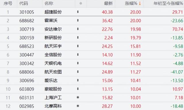 前期主线低空经济有扩散到军工的趋势,今天商业航天概念板块涨停潮,超捷股份、上海沪工、北摩高科、达华智能等多股涨停。
