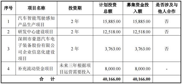 根据招股说明书显示,豪恩汽电此次计划募集资金4.01亿元,主要用于四大项目。其中,募集资金中共计8000万元用于补充流动资金,即用于偿还中长期借款,降低公司资产负债率,缓解存货资金占用压力。