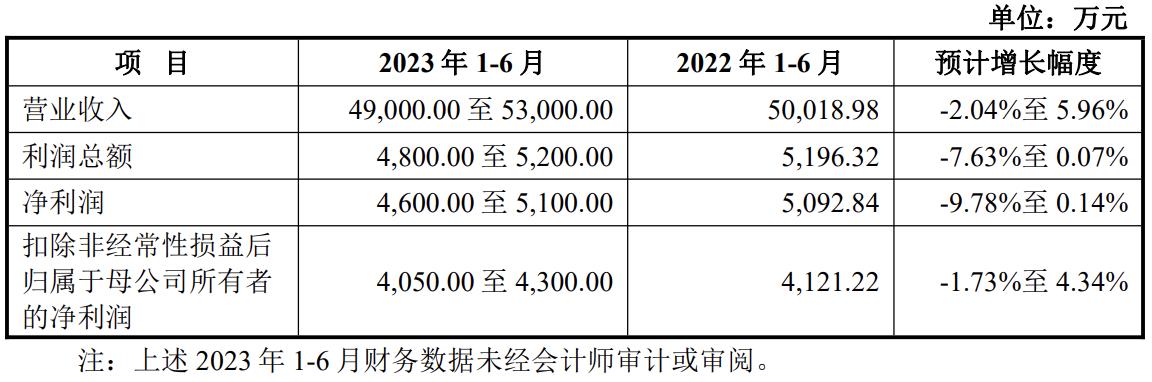 同时,豪恩汽电预计其2023年上半年的营收为4.9亿元至5.3亿元,同比变动-2.04%至5.96%;净利润4600万元至5100万元,同比变动-9.78%至0.14%;扣非后净利润4050万元至4300万元,同比变动-1.73%至4.34%。