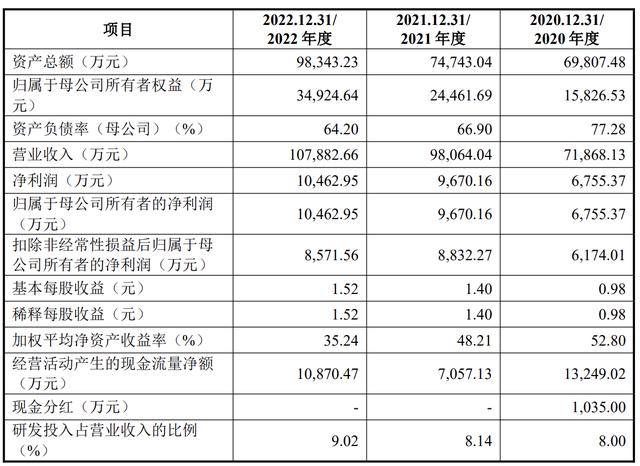 2020年、2021年和2022年,豪恩汽电的营业收入分别为7.19亿元、9.81亿元和10.79亿元,净利润分别为6755.37万元、9670.16万元和1.05亿元,扣非后净利润分别为6174.01万元、8832.27万元和8571.56万元。