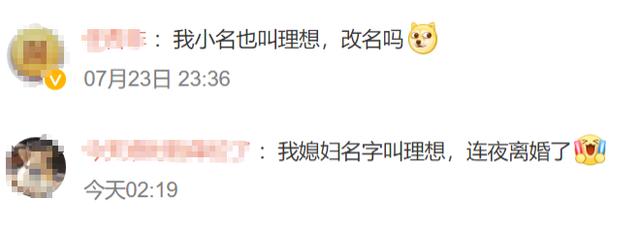 消息传出后,网友纷纷吐槽理想这波格局不够大,还有网友调侃称,自己小名也叫理想,需要改名吗?