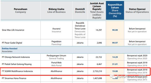 上汽通用五菱多元金融印尼公司于2019年3月获印尼金融监管局颁发多元金融公司营业执照,并在2019年5月9日开业,目前已在印尼建立146个销售网点,覆盖全国五菱和名爵的汽车消费贷款业务,形成以上汽品牌为主、多元金融为辅的运营模式。