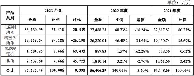 不难看出,瑞迪智驱的收入结构并不算稳定。招股书显示,瑞迪智驱2021年、2023年的电磁制动器收入均保持增长态势,而2022年则同比减少16.24%。同理,瑞迪智驱2021年、2022年的精密传动件收入均实现了增长,而2023年则同比减少26.19%。