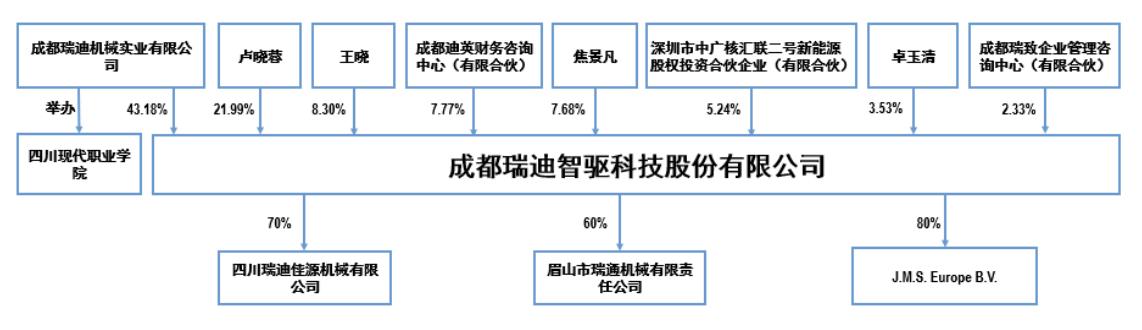 本次上市前,瑞迪智驱的实际控制人为卢晓蓉(女)、王晓(男),二人为夫妻关系。据招股书披露,卢晓蓉、王晓夫妇直接及间接可支配该公司73.47%的股权。本次发行完成后,直接及间接可支配该公司55.09%的股权。