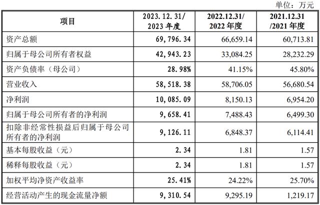2021年、2022年和2023年,瑞迪智驱的营收分别为5.67亿元、5.87亿元和5.85亿元,净利分别为6954.20万元、8150.13万元和1.01亿元,扣非后净利润分别为6114.41万元、6848.37万元和9126.11万元。