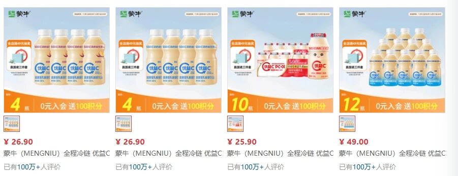 而蒙牛目前在售的优益C系列产品为“优益C活菌型乳酸菌饮品”,口味包括原味、百香果味、冰柚子味、杏皮茶味、0蔗糖等,规格介于100ml至340ml,每100ml售价为1.24至2.6元,价格与其他品牌同类产品相近。