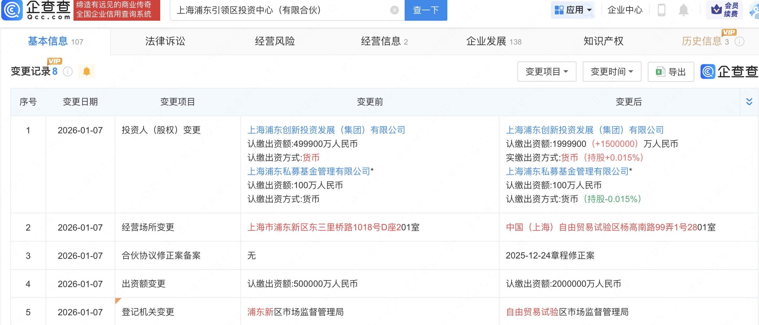 企查查APP显示,近日,上海浦东引领区投资中心(有限合伙)发生工商变更,出资额由50亿人民币增至200亿人民币,增幅300%。企查查信息显示,该企业成立于2022年,经营范围为以自有资金从事投资活动,由上海浦东创新投资发展(集团)有限公司、上海浦东私募基金管理有限公司共同出资。