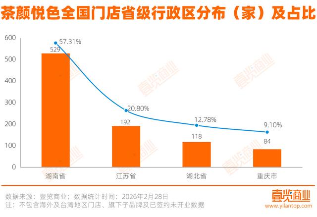 这种谨慎背后,是茶颜悦色高度依赖区域市场的门店布局。截至2026年2月,茶颜悦色共有923家门店,门店重点分布在湖南长沙。