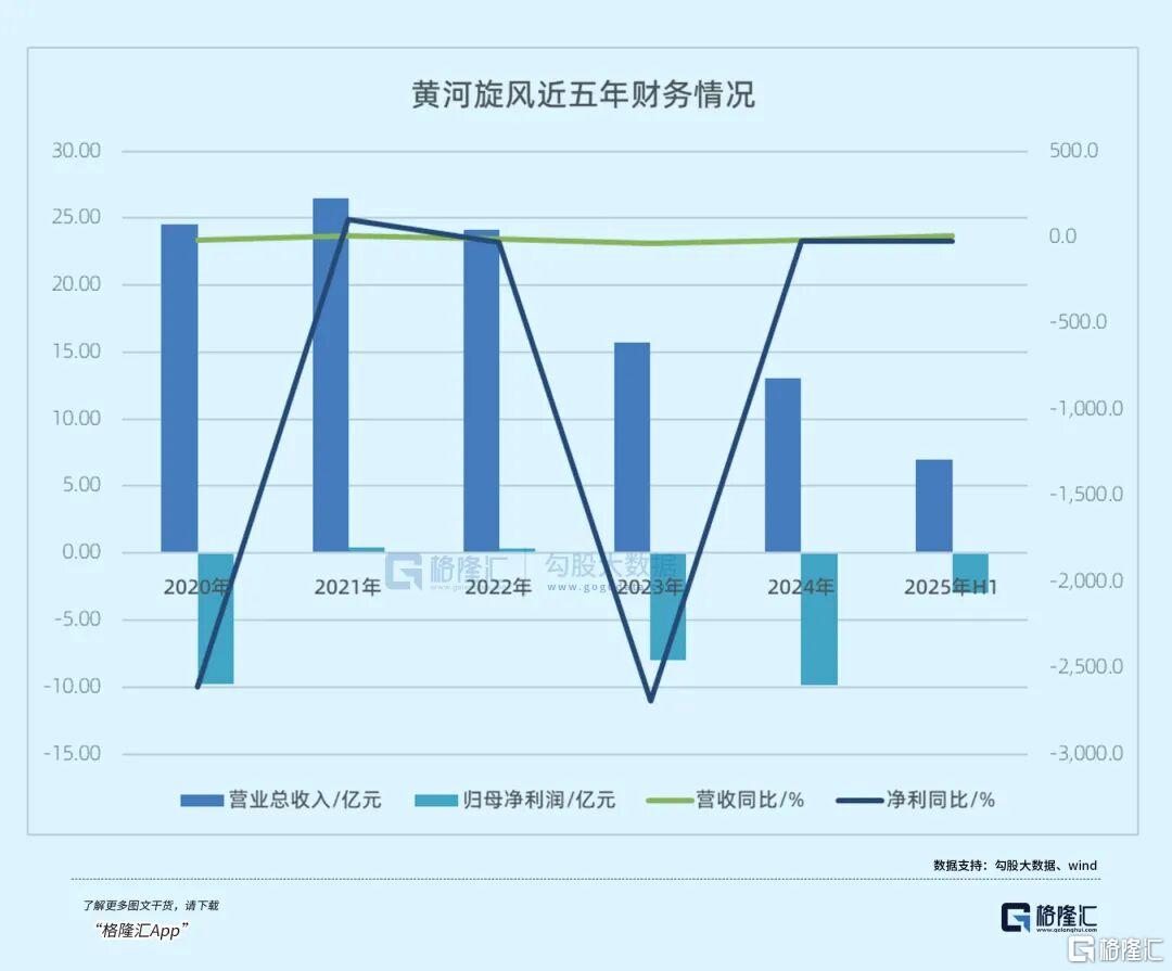 今年上半年,在涨停潮中收获三连板的黄河旋风,今年上半年归母净利润亏损2.99亿元,自2022年以来,黄河旋风的净利润已经连续三年同比下滑,近两年累计亏损已经达到17.81亿元。