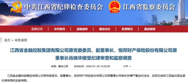 近日,江西省纪委监委的一则通报在金融圈掀起波澜——退休已三年的恒邦财险原董事长肖晓华因涉嫌严重违纪违法,正接受纪律审查和监察调查。