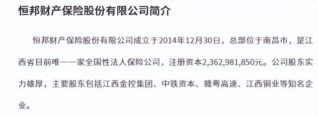 这家公司成立于2014年12月,总部位于南昌,是江西省目前唯一一家全国性法人保险公司,注册资本约23.63亿元。